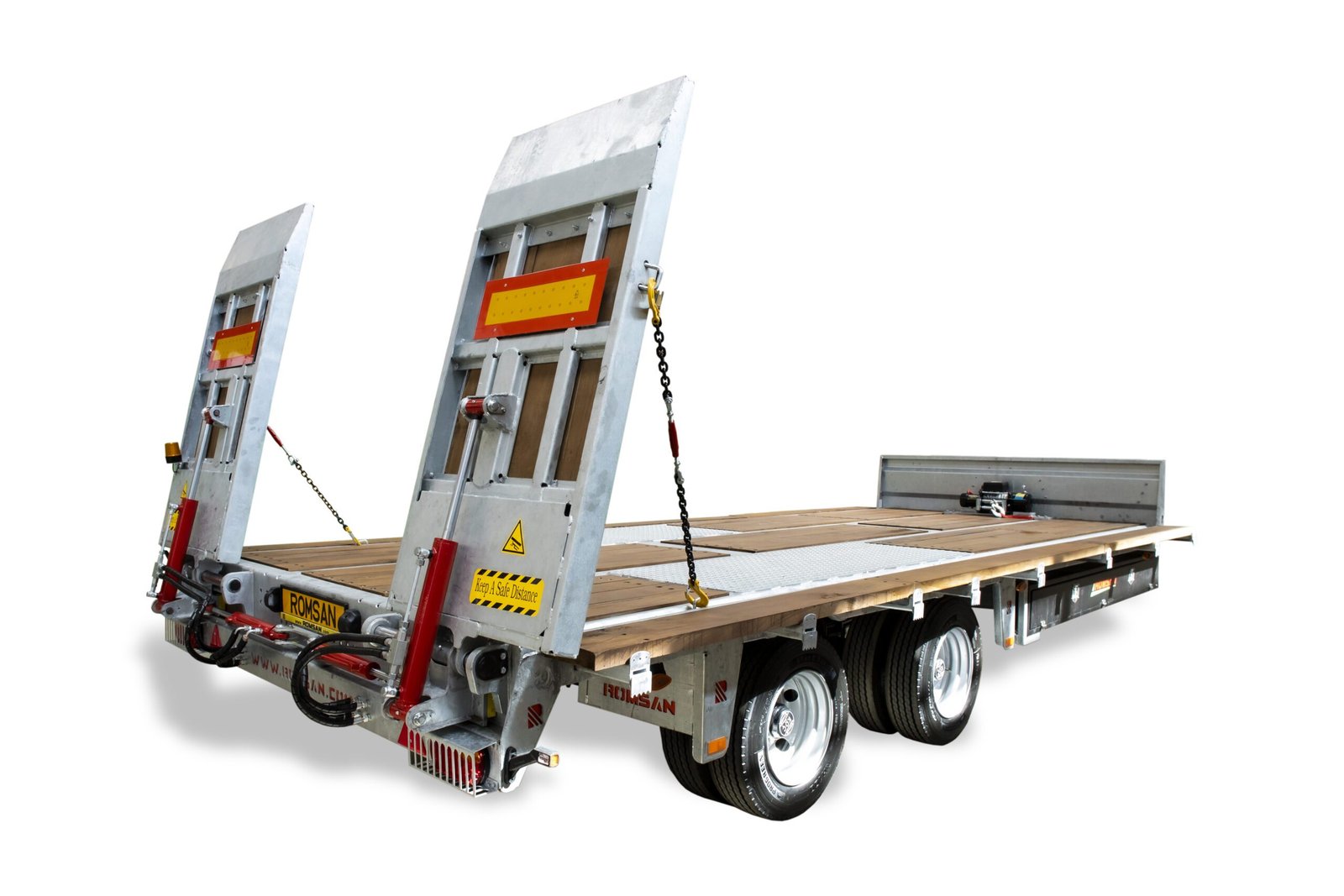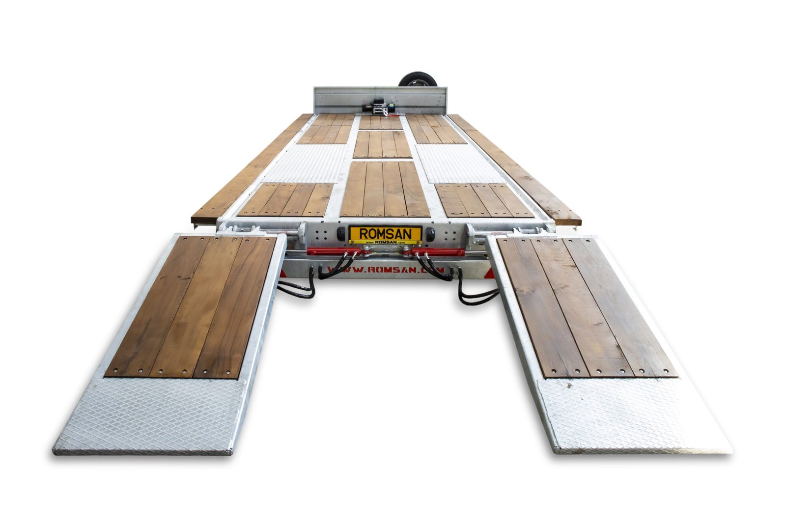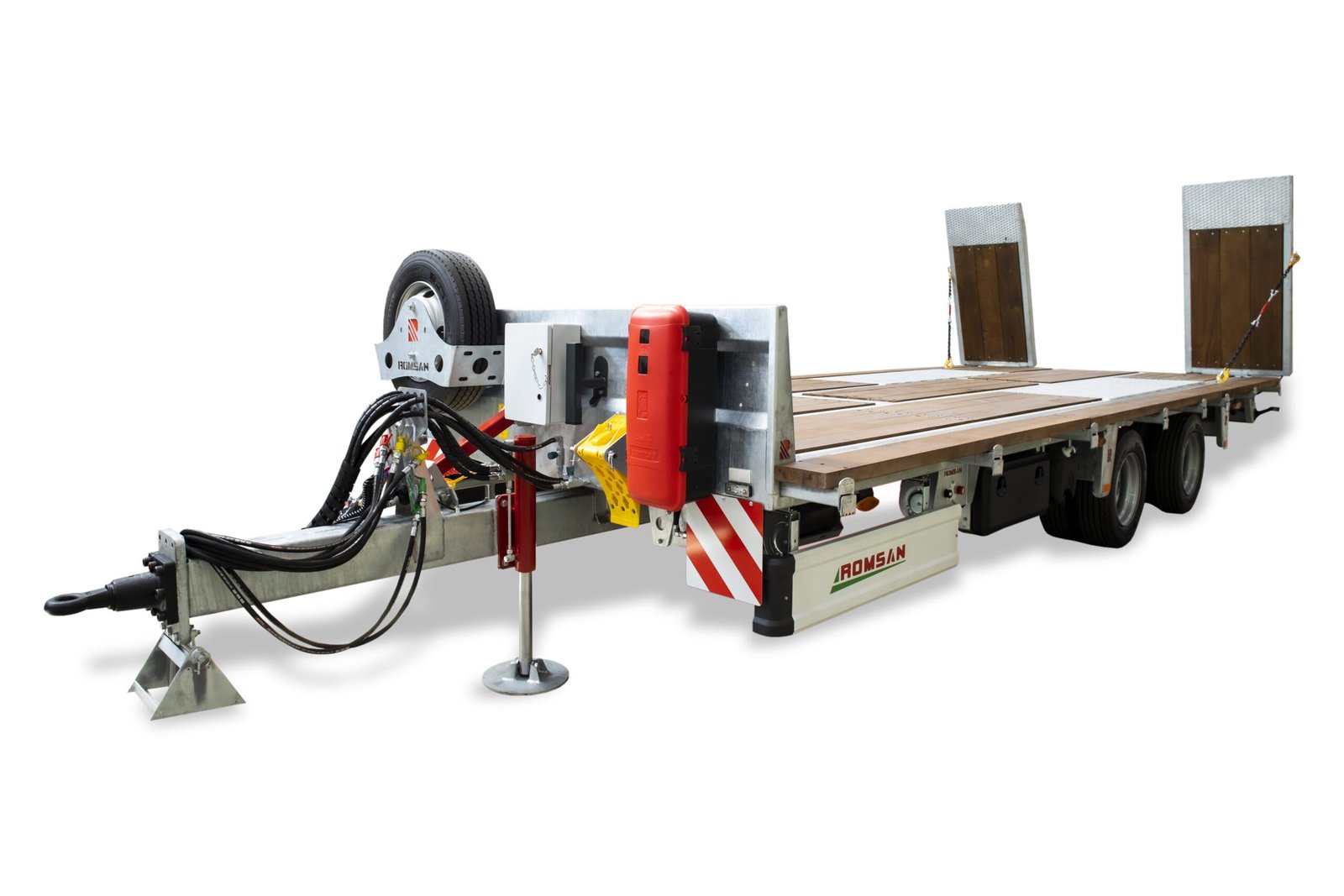 The wide and flat platform structure allows tractors, harvesters, construction machines, and similar heavy equipment to be loaded with ease. The rear loading ramps, which can operate hydraulically or mechanically, make the loading process fast, safe, and practical. The anti-slip floor coating enhances safety by preventing load movement during transportation.