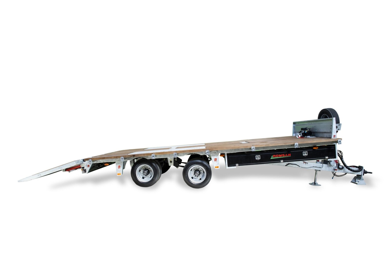 The R200TALBD is a dual-axle platform-type transport trailer designed for the safe and efficient transportation of heavy machinery, agricultural equipment, and large-scale loads. Its robust steel chassis, wide platform surface, and high load capacity ensure superior durability and stability even in demanding terrain conditions. This model is an ideal solution for professional transport companies, agricultural machinery dealers, and the construction industry.
