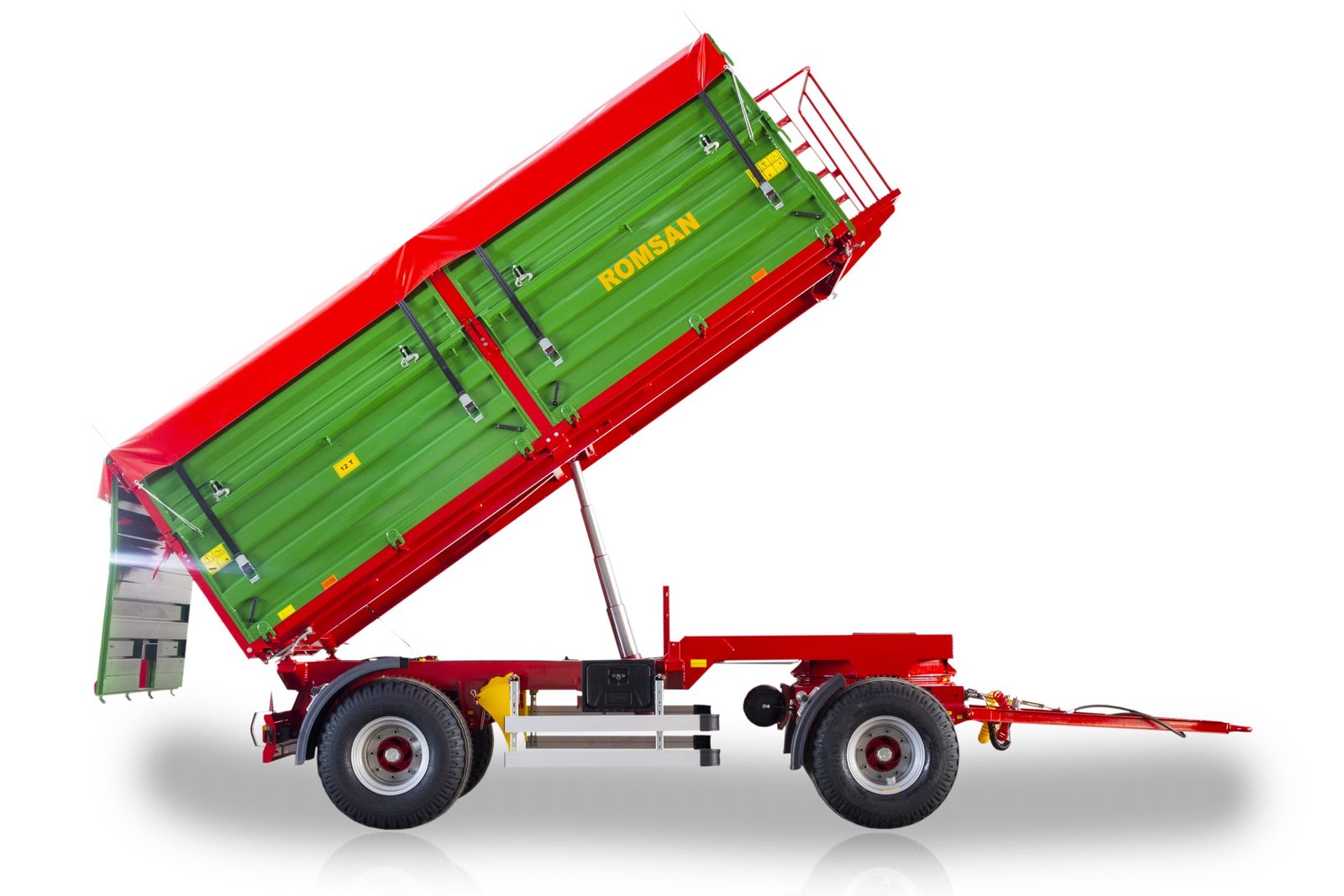 Its powerful engine, robust chassis, and double-axle system enable it to safely transport heavy loads. The advanced dump mechanism allows for fast, practical, and secure unloading of materials. Parabolic leaf spring suspension and specially designed tires provide excellent balance and driving comfort even in difficult terrain conditions.